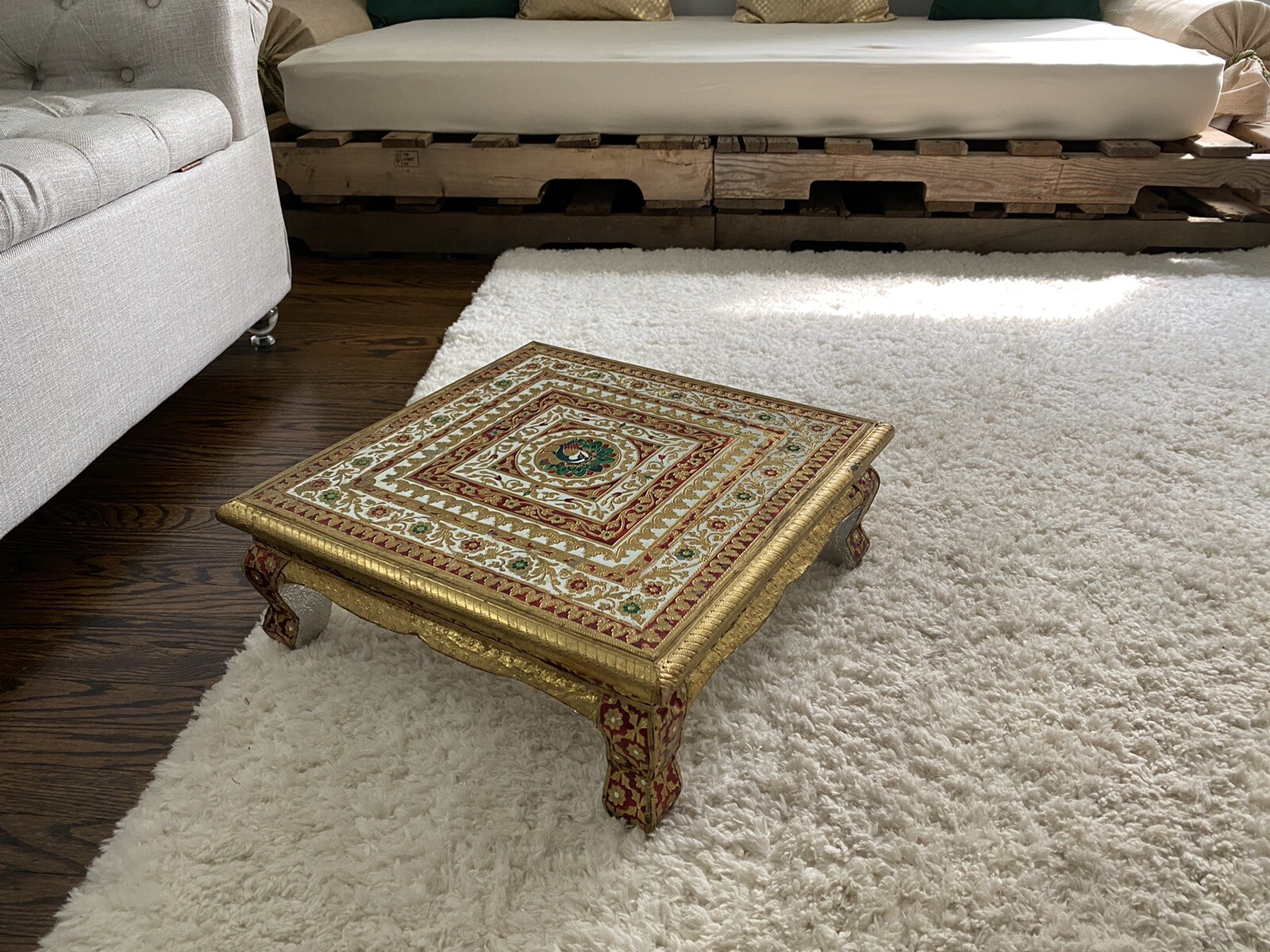 Home Decor Painted Step Stool Side Table Square Corner Pooja Chowki White 9 For Sale Online Ebay