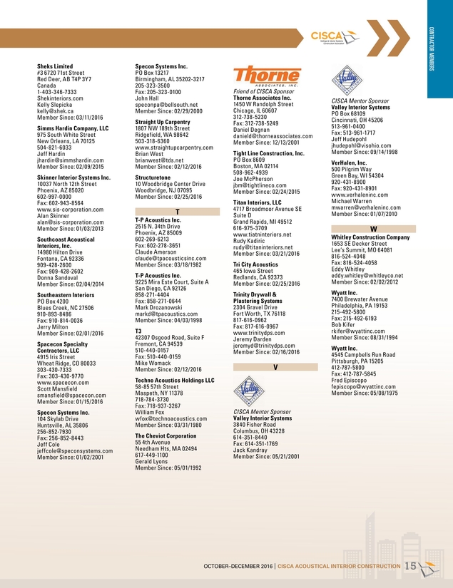 Acoustical Interior Construction October December 2016