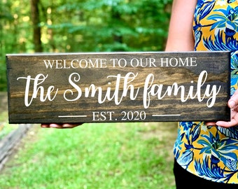 Welcome To Our Home Sign Wood Sign Custom Sign Farmhouse Etsy In 2020 Wooden Welcome Signs Porch Signs Welcome Signs Front Door