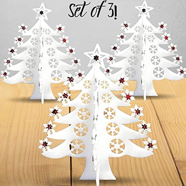 Amazon Com Banberry Designs Christmas Tree Foam 3d Decorations Set Of 3 White Glittery Xmas Decor Holiday Window Table Decoration Or In Kids Room Home Kitchen