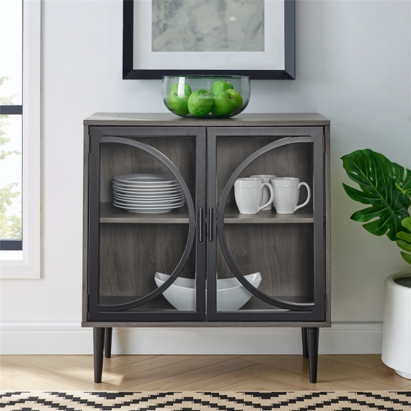 Gray Glass Door With Decorative Metal Cabinet Kirklands