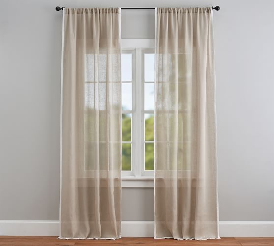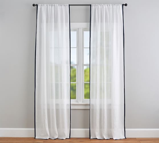 Linen Sheer Trim Curtain 96 White Navy Decorist