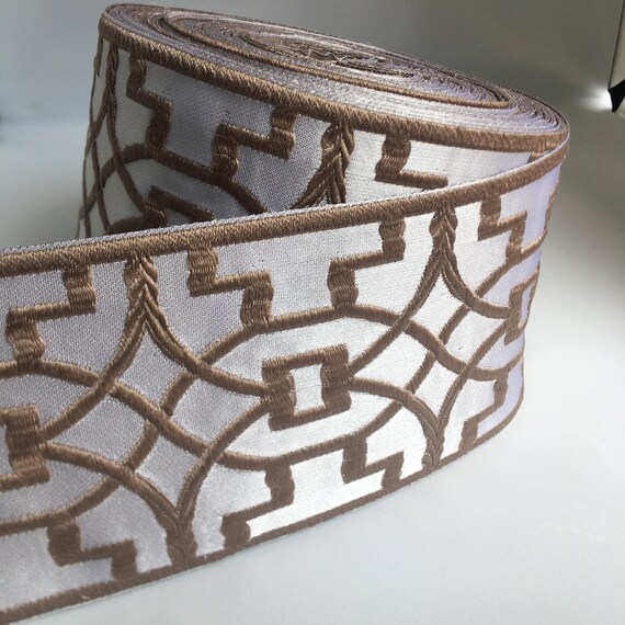 Decorative Fabric Trim For Curtains Greek Key Fabric Curtain Trim Upscale Designer Curtain Embodiary Fretwork Fabric Trim In 2020 Fabric Decor Fabric Trim Drapery Trim