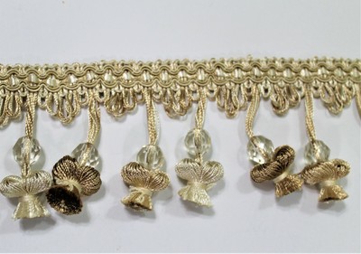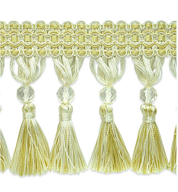 By The Yard Gold Ivory Mix Beaded Tassel Fringe Trim Fabric Etsy