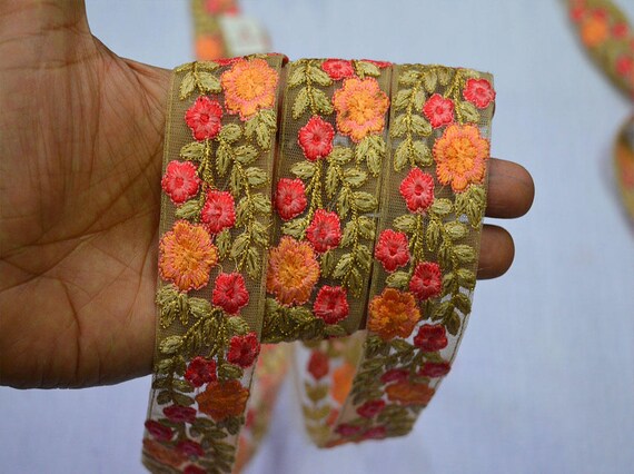2 2 Inch Wide Decorative Sari Border Embellishment Trimming Fabric Trim By 9 Yard Embroidered Saree Border