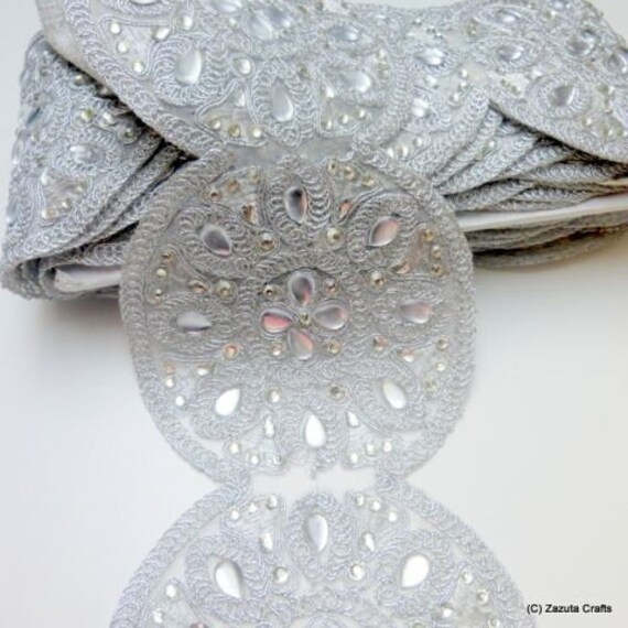 Silver Cirlces Embellished Trim Cut Work Trim Embellished Etsy