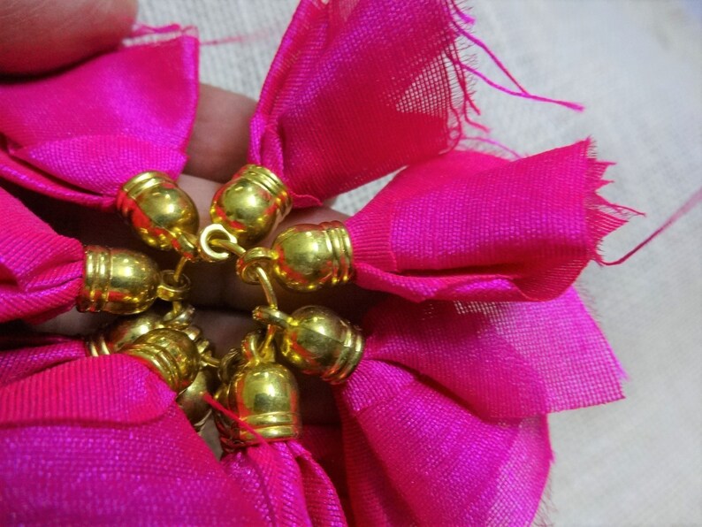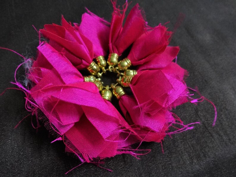 Handmade Fabric Trim Tassels Decorative Tassels Indian Tassels Fabric Tassels Boho 10 Pcs Pink Sari Silk