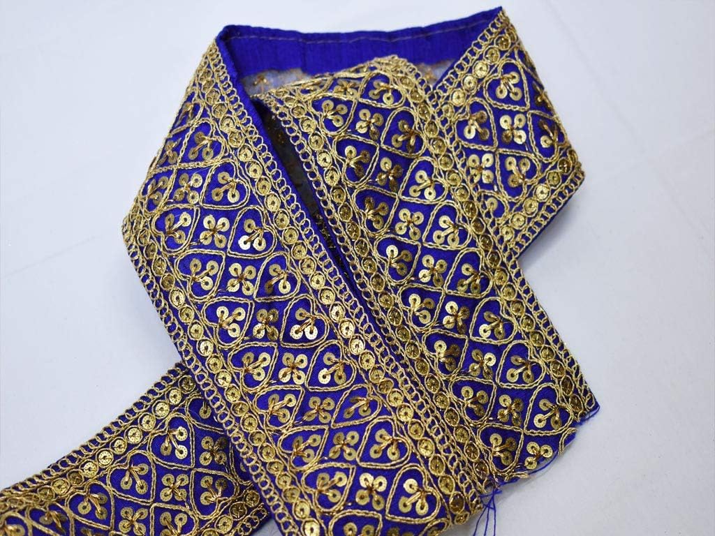 Amazon Com Wholesale Royal Blue Fabric Trim By 9 Yard Embroidered Embellishment Dresses Trimmings Decorative Costume Ribbon Indian Sari Border Gold Crafting Sewing Sequins Border