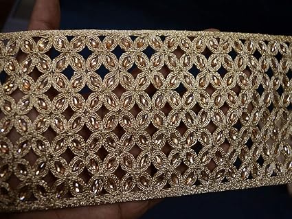 Amazon Com 9 Yard Gold Embellishments Craft Supplies Decorative Trim 4 Inches Crafting Ribbon Sari Border Trim Costume Sewing Trim Fashion Trim Fabric Trim Indian Trims Saree Border Trimmings Kundan Trim
