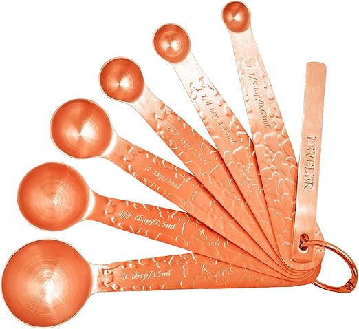 Amazon Com Feng Ye Copper Measuring Spoons Set Of 7 W Leveler Heavy Duty Stainless Steel Engraved Stackable Nesting Embossed Decorative Kitchen Teaspoon Tablespoon For Cooking Baking Rose Gold Kitchen Dining