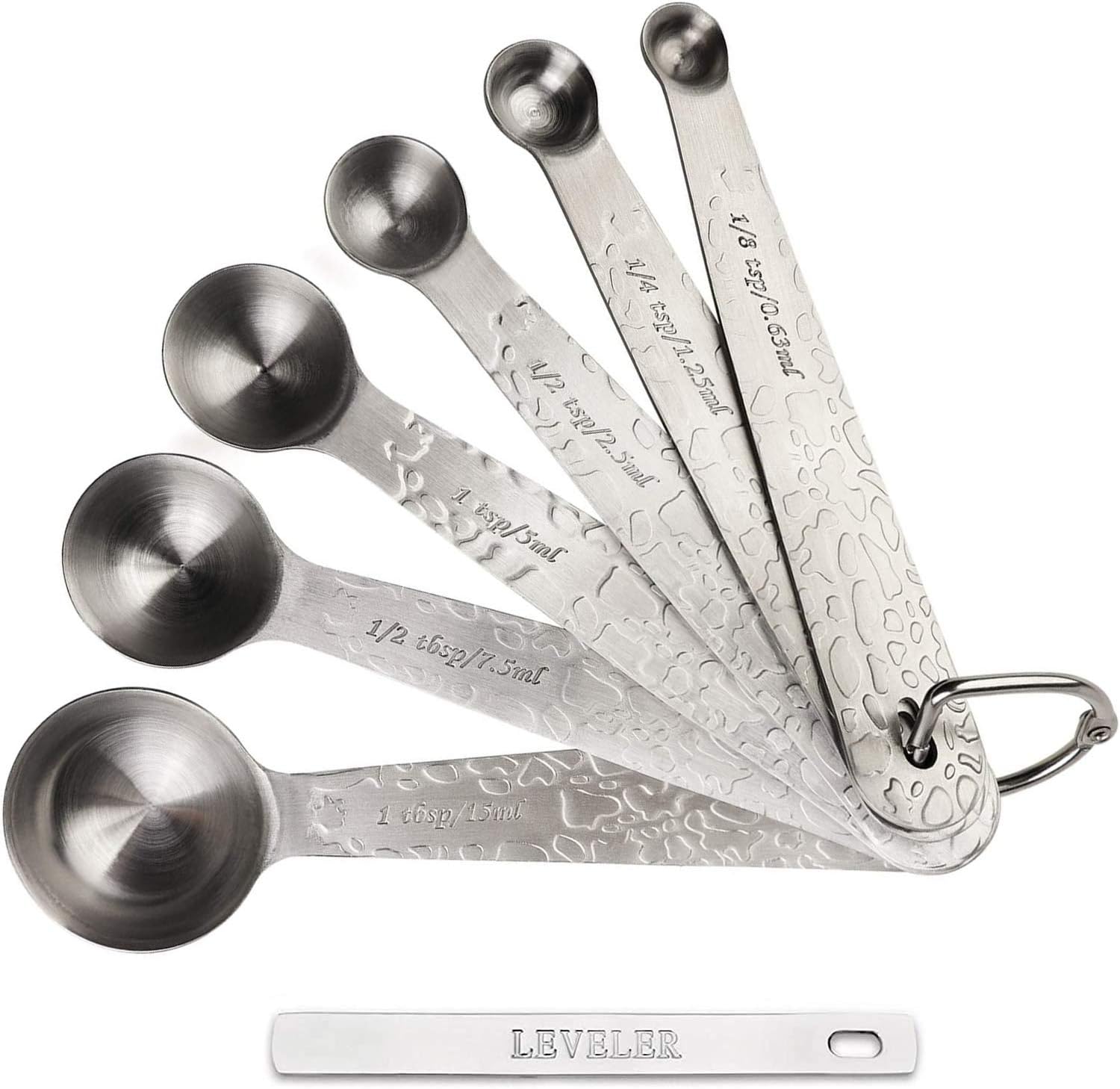 Amazon Com Feng Ye 7 Piece Measuring Spoons Set W Leveler Stainless Steel Engraved Nesting Unique Embossed Kitchen Teaspoon Tablespoon Fits In Spice Jars For Dry Liquid Ingredients Coffee Cooking Baking Kitchen Dining