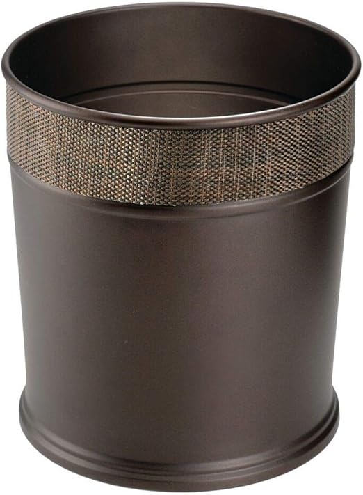 Amazon Com Mdesign Decorative Round Small Trash Can Wastebasket Garbage Container Bin For Bathrooms Powder Rooms Kitchens Home Offices Steel In Bronze Finish With Woven Textured Accent Home Kitchen