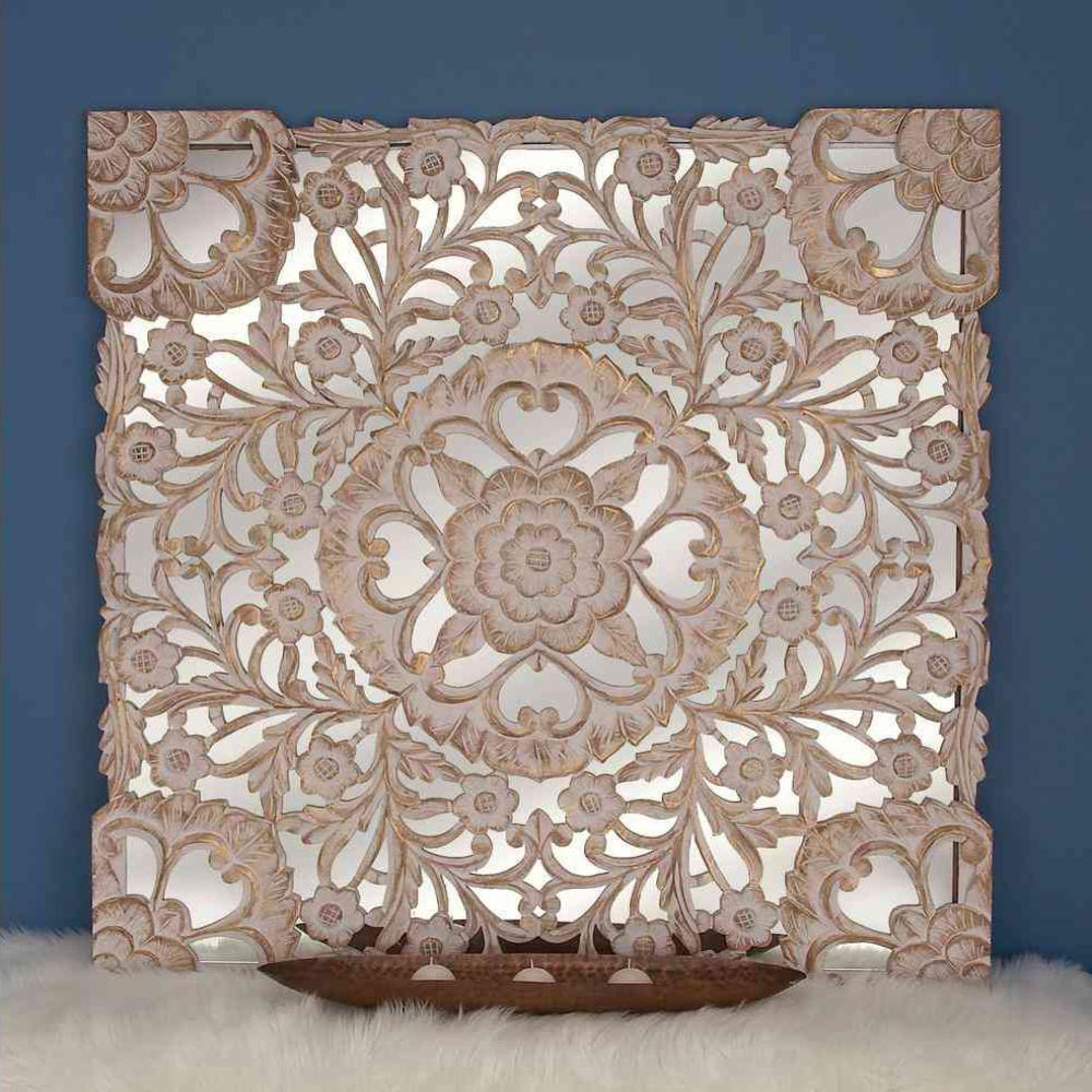 Litton Lane 48 In X 48 In Rustic Pine Wood And Mirror Decorative Square Wall Panel 23781 The Home Depot