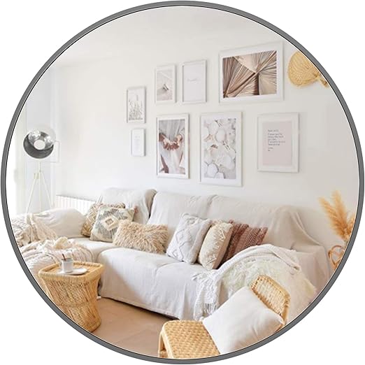 Amazon Com Pexfix 30 Wall Round Mirror Circle Mirror Modern Industrial Glossy Brushed Metal Frame Wall Mounted Decorative Mirror For Bedroom Bathroom Living Room Entryway Grey Kitchen Dining