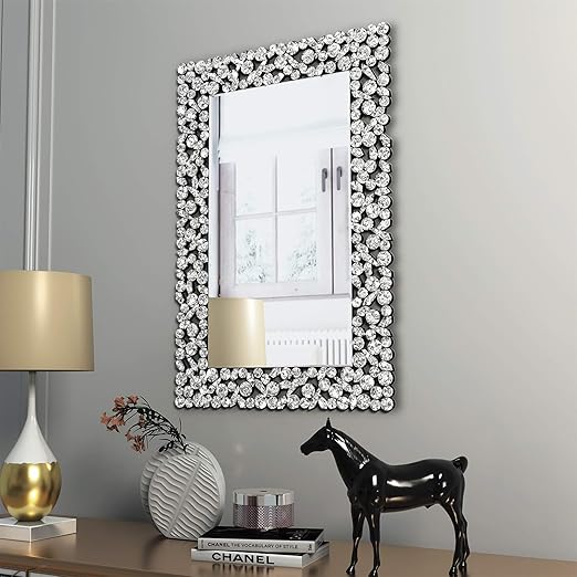 Breeze Point M00202 16 X 24 Rectangular Beveled Retro Modern Wall Mirror Decorative Mirror Framed Dimensional Mirrored Squares Silver Breeze Point Home Decor