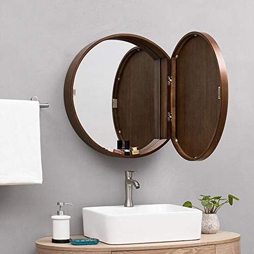 Amazon Com Bath Wooden Round Decorative Mirror With Door Make Up Vanity Mirror With Storage Function Wall Mirror For Bedroom Living Room Hallway Bathroom Walnut Color Size 50 60 70cm Kitchen Dining