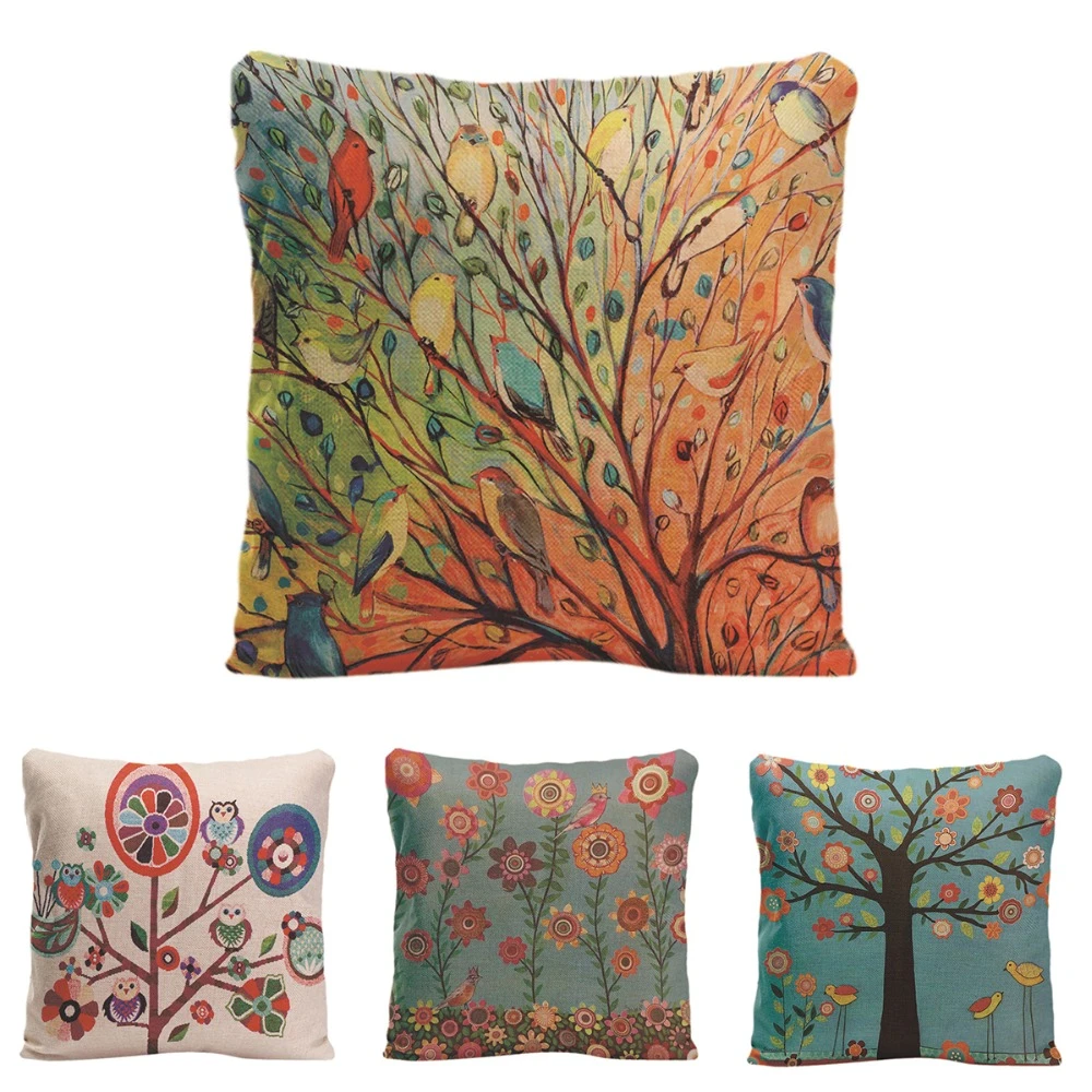 Rainbow Color Season Life Tree Cushion Cover Cute Bird Animal Car Waist Throw Pillow Cover 20x20 Inches Home Decor Pillowcase Cushion Cover Throw Pillow Coverstree Cushion Cover Aliexpress