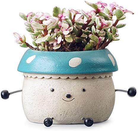 Amazon Com Mushroom Flower Pots Doll Shaped Resin Garden Pots Cute Green Plants Flower Pot Lovely Pen Container Modern Decorative Planter Pot For Outdoor Or Indoor Garden Flower Plant Cactus Bonsai Aqua Kitchen Dining