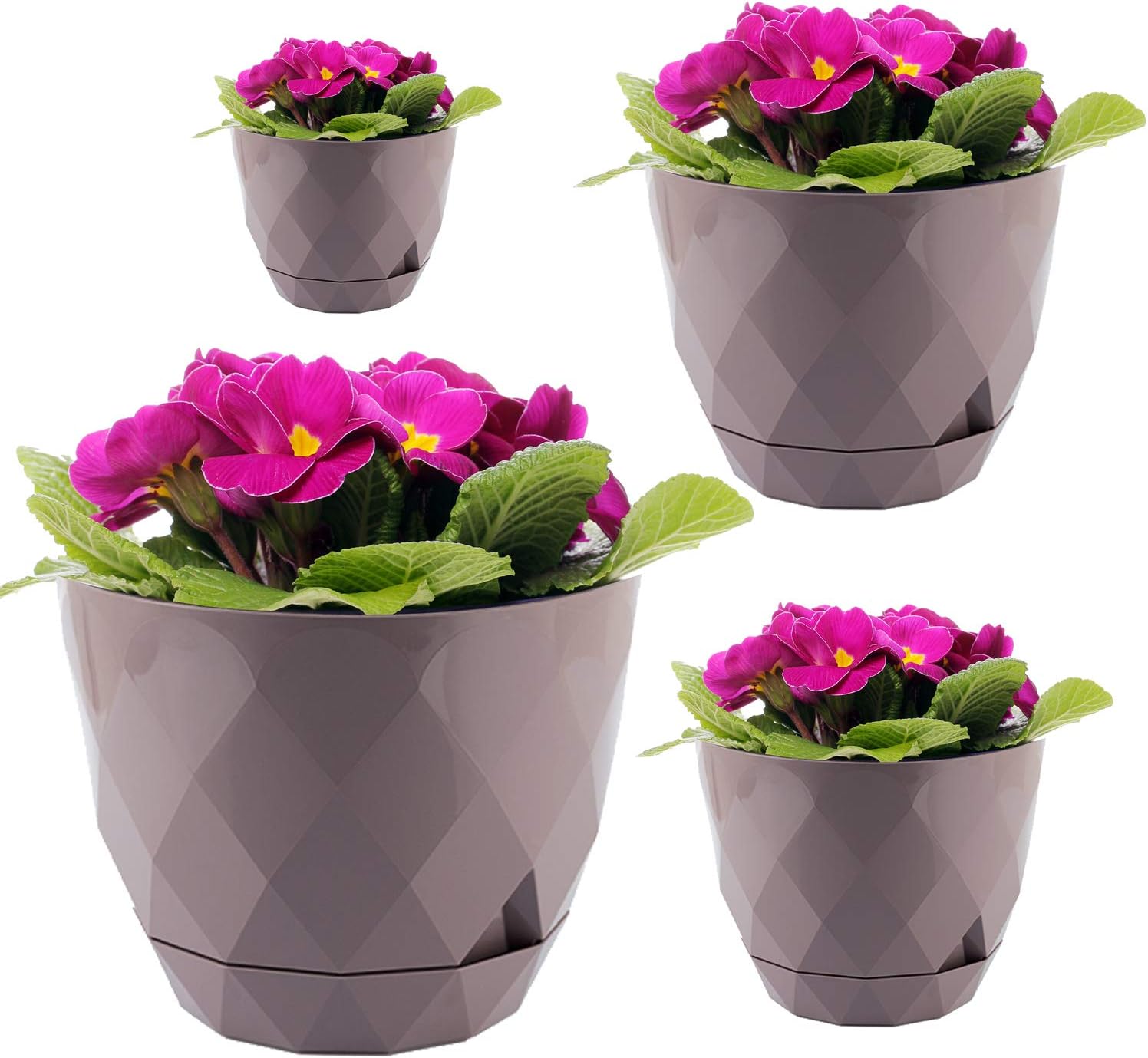 Amazon Com Self Watering Flower Pots For Indoor Plants Planter Pots With Drainage Holes Modern Decorative Garden Pots Set Of 4 And Tray For All House Plants Flowers Herbs Succulents Seeding Plastic Pots