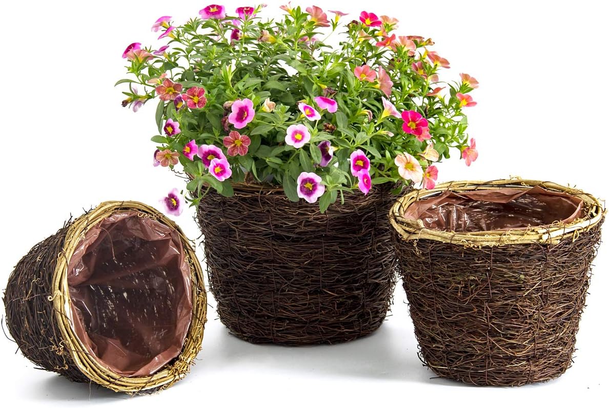 Amazon Com Flower Pots Indoor Outdoor Planters Seagrass Plant Basket Garden Decorative Flower Pot Cover Coffee 9 8in Set Of 3 Home Kitchen