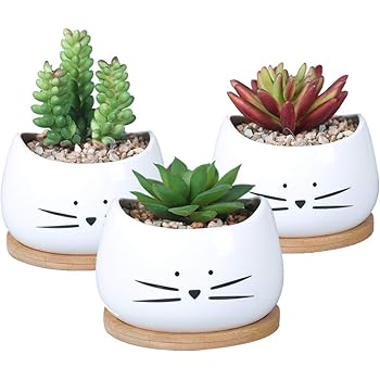Amazon Com Koolkatkoo 3 2 Inch Cute Cat Ceramic Succulent Planter Pots With Removable Saucer Unique Cactus Planters Porcelain Decorative Flower Pot For Cat Lovers Set Of 3 White Garden Outdoor