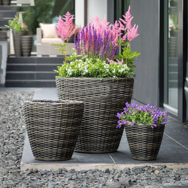 S D Classic Round Shaped Outdoor Decorative Garden Coffee Shop Flower Pots Rattan Wicker Ceramic Planters Set Of 3 Buy Ceramic Planters Planter Cover Garden Planter Product On Alibaba Com