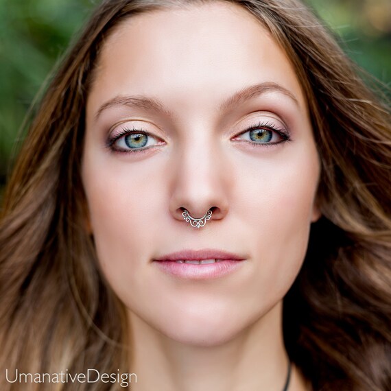 Ornate Septum Ring Tribal Septum Hoop Sterling Silver Septum Etsy