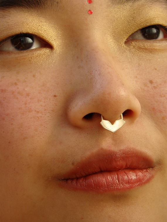 Tribal Septum 14k Gold Septum Geometric Heart Septum Septum Etsy