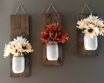 Decorative Mason Jar Wooden Wall Decor Rustic Wall Sconces With Flowers Farmhouse Home Decor Set Of 3 Buy Mason Jar Wall Decor Wooden Decor With Flowers Farmhouse Home Decor Product On