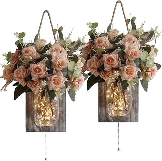 Decorative Mason Jar Wall Decor Rustic Wall Sconces With Led Fairy Lights And Flowers Farmhouse Home Decor Wish