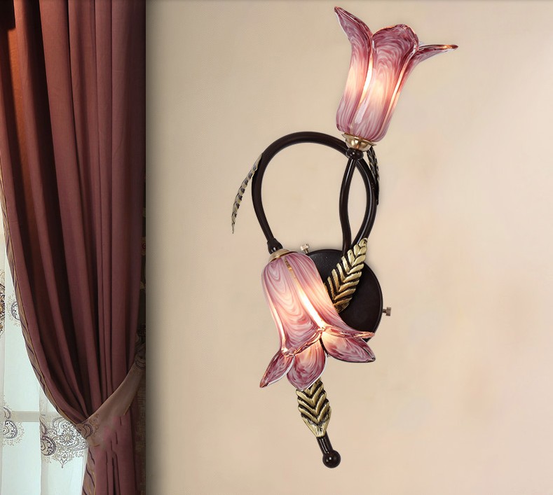 Decorative Wall Sconces Flower Wrought Iron Glass Lighting Bathroom
