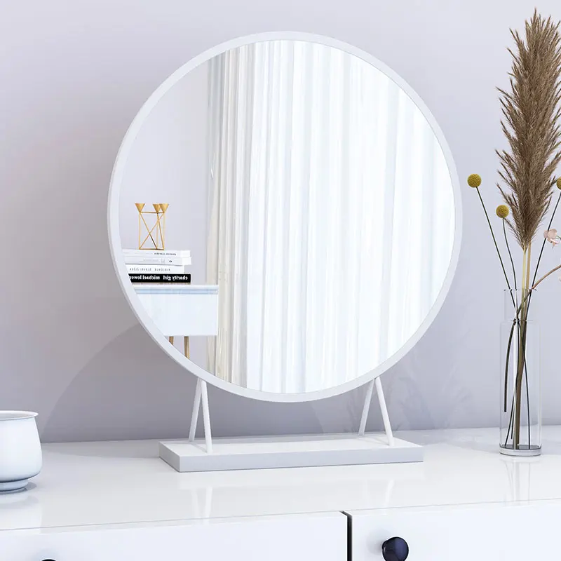 Makeup Mirror Nordic Gold White Metal Round Wall Vanity Mirror Home Decorative Bedroom Dresser Large Desktop Mirrors Mx9261728 Decorative Mirrors Aliexpress