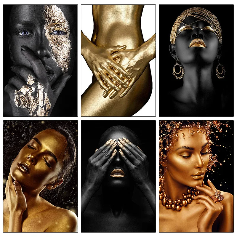 Gold Black Nude African Art Woman Mosaic 5d Diy Diamond Painting Full Square Round Diamond Embroidery Sale Wall Decoration Leather Bag