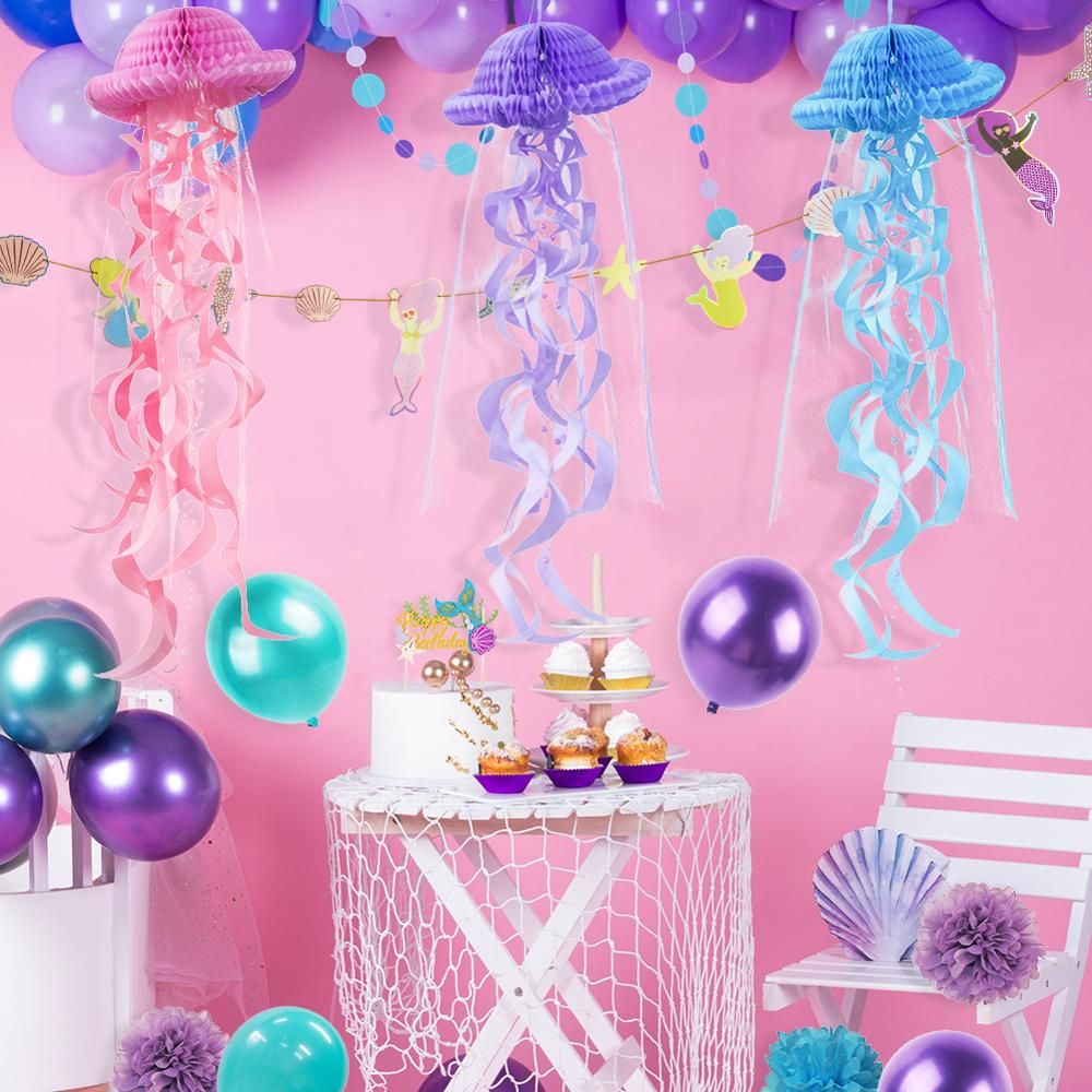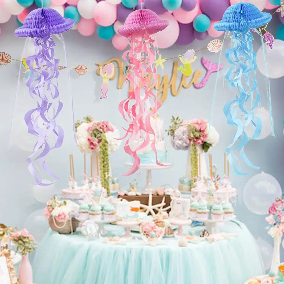 Diy Mermaid Party Decorations Hanging Jellyfish Honeycomb Ball Banner Swirls Under The Sea Baby Shower Birthday Party Supplies Party Diy Decorations Aliexpress