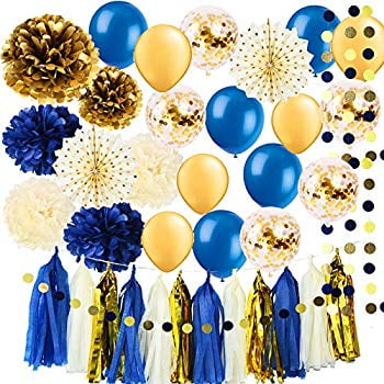 Amazon Com Qian S Party Royal Prince Birthday Decorations Baby Shower Decorations Navy Gold Latex Balloons Tassel Garland Polka Dot Tissue Poms For Boy First Birthday Navy Gold Wedding Decorations Home Kitchen