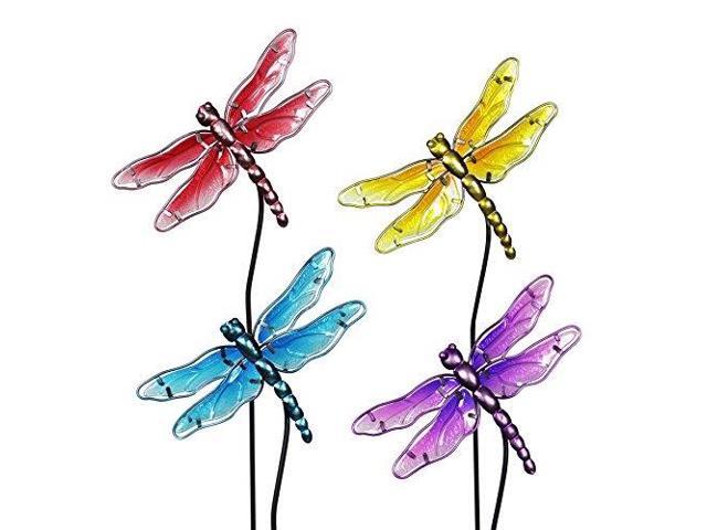 Exhart Colorful Dragonfly Decorations Durable Glass Dragonfly Garden Stakes Garden Stake Set Red Yellow Turquoise Purple Dragonfly Decor For Garden Yard 8 25 L X 1 25 W X 26 H Newegg Com