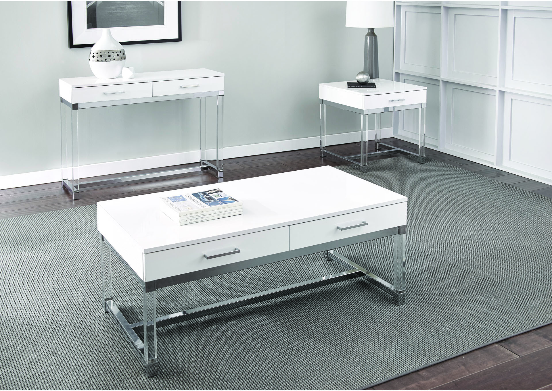 Everett White Cocktail End Sofa Table Maverick Wholesale Furniture