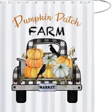 Amazon Com Wencal Fall Harvest Pumpkins Shower Curtain Buffalo Check Leopard And Crow Autumn Bathroom Decor With Hooks 72 X 72 Inches Kitchen Dining
