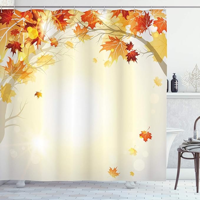Maezap Fall Tree Maple Leaves Shower Curtain Orange Autumn Bathroom Decor Waterproof Polyester With Hooks 69x70 Inchs Buy Online In Bahamas At Desertcart Productid 157533243