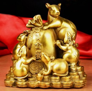 Brass Mouse Gold Coin Pocket Fortune Statue Zodiac 2020 Year Rat Feng Shui Decor Ebay