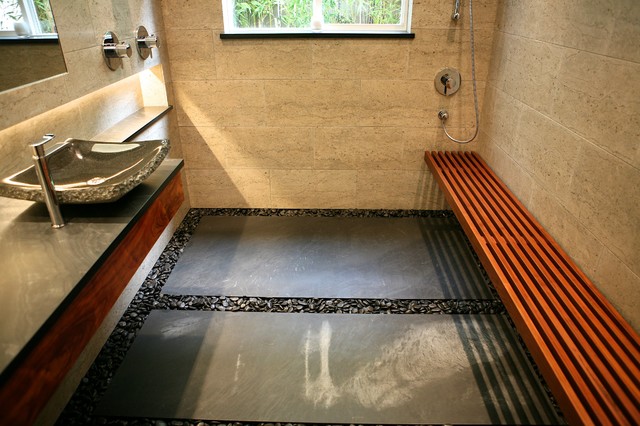 Bathroom With Black And White Stripe Floor Tiles Contemporary Bathroom