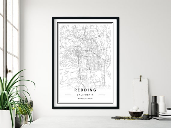 Redding California Map Custom Map Print Redding Ca Map Etsy