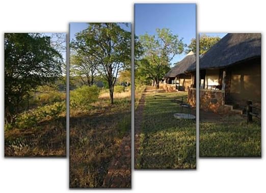 Amazon Com Sudoiseau Wall Art Painting Bungalows In The Bush South Africa Grasslands And Pictures Pictures Canvas Prints Poster Oil Paintings Landscape Paint Modern Home Decor Artwork Gift 4 Panels Furniture Decor