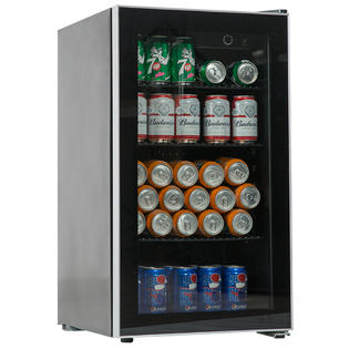 Moprem Home Ssw5899 Beverage Refrigerator Or Wine Cooler With Glass Door For Beer Soda Or Wine 90 Can Or 26 Bottles Mini Fridge