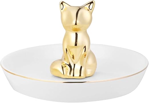Amazon Com Lioobo Ceramic Jewelry Tray Ring Holder Jewelry Earrings Necklace Storage Plate Ceramic Fox Jewelry Dish Home Decor Golden Fox Home Kitchen