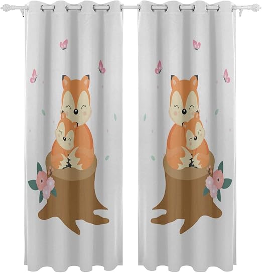 Amazon Com Draperies Darkening Orange Golden Fox Animal Single Sided Shower Curtains For Shower Grommet Curtains For Home Decoration 55 X 78 Inch 2 Pcs Home Kitchen
