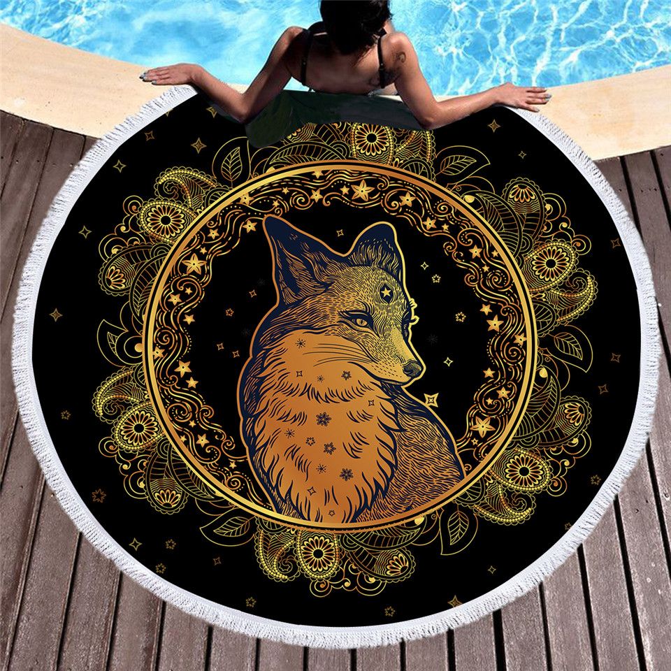 Golden Fox Round Beach Towel Microfiber Animal Stars Leaves Flowers Bath Towel Tassels Paisley Picnic Mat Toallas Bath Sheet Hand Towel From Cocoart2016 24 04 Dhgate Com