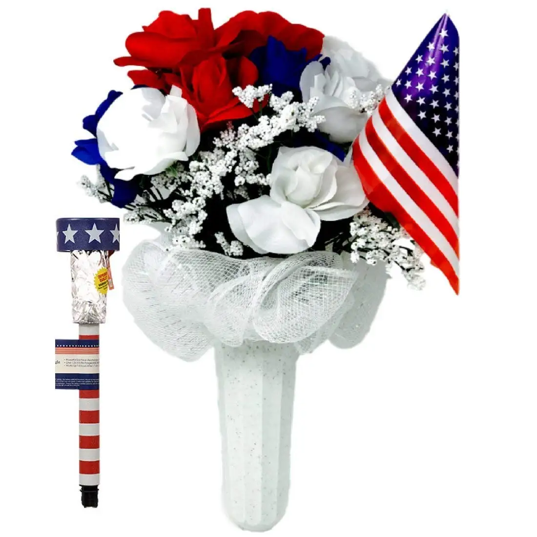 Grave Saddle Summer Grave Flowers Made With Solar Lights That Come On At Dust Beautiful At Night Memorial Flowers Cemetery Flowers Grave Flowers