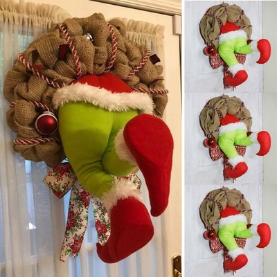 Amazon Com Awus Christmas Burlap Wreath Front Door Decorations Grinch Stole Christmas Wreath Home Decorations Flowers Home Decor For Home Wall Window Staircase Door Decor Outdoor Winter Party Decor 12 Home Kitchen