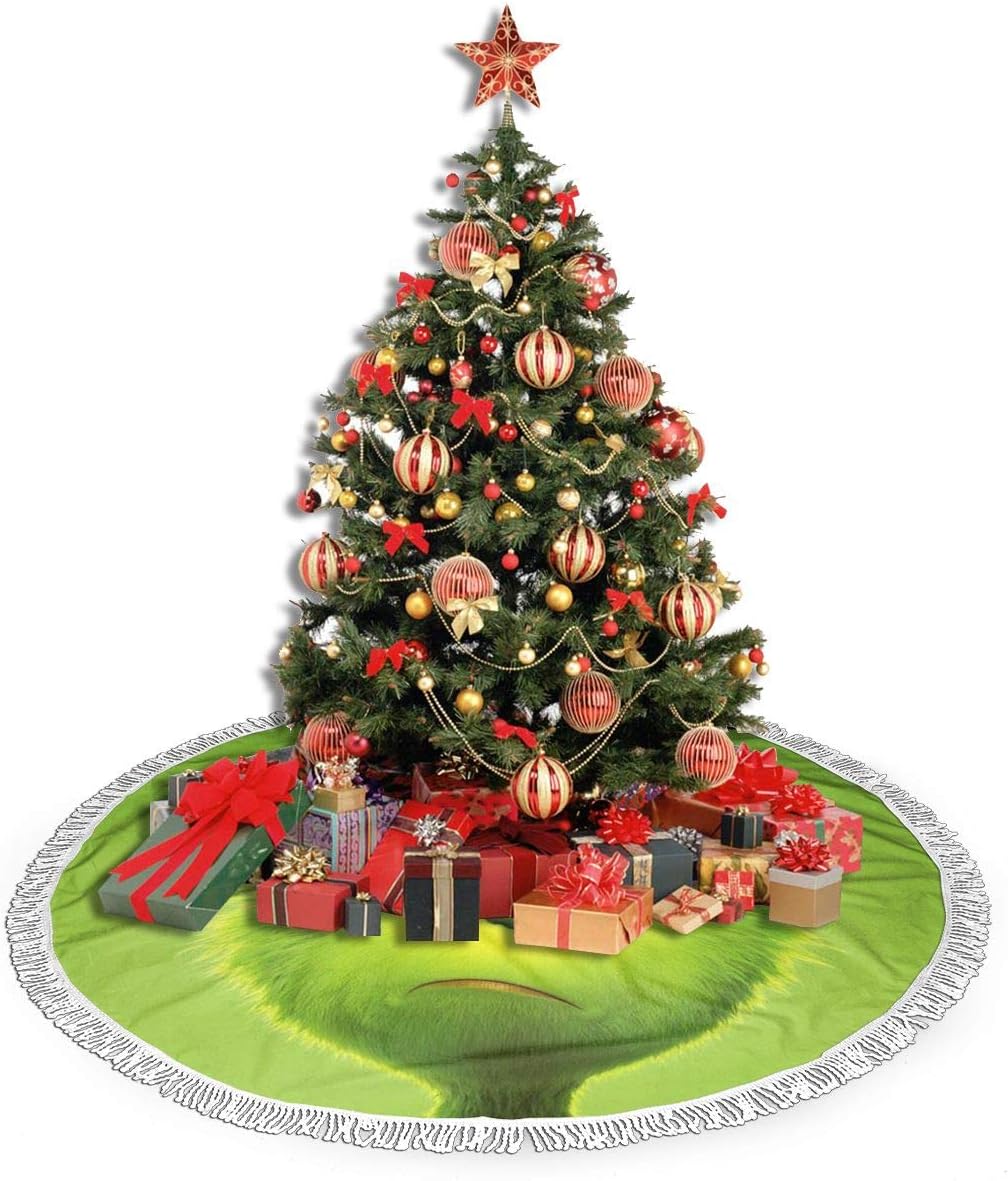 Amazon Com Jawannan The Grinch Stole Christmas Christmas Tree Skirt 30 Polyester With White Fringed Border For Party Holiday Decorations Xmas Ornaments Home Kitchen